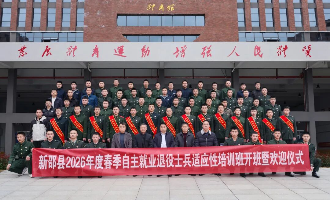 3月18日,新邵县退役军人事务局联合邵阳通航职业技术学院举行2026年春季自主就业退役士兵适应性培训班开班仪式,66名自主就业退役士兵现场参训。